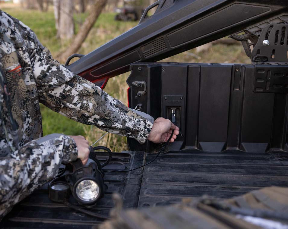 - Puerto de alimentación de 12 V para la caja de carga con interruptor integrado en el salpicadero